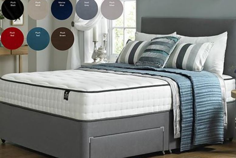 From £259.99 for a divan bed with plain headboard from Dreamtouch Mattresses LTD - save up to 57% Get this divan bed and mattress with simple upholstered headboard. Choose from single, small double, double or king sizes. It offers versatile storage options, with the option of two drawers or four drawers. Eight colours to choose from. Part assembly required Will bring a contemporary look to your bedroom!